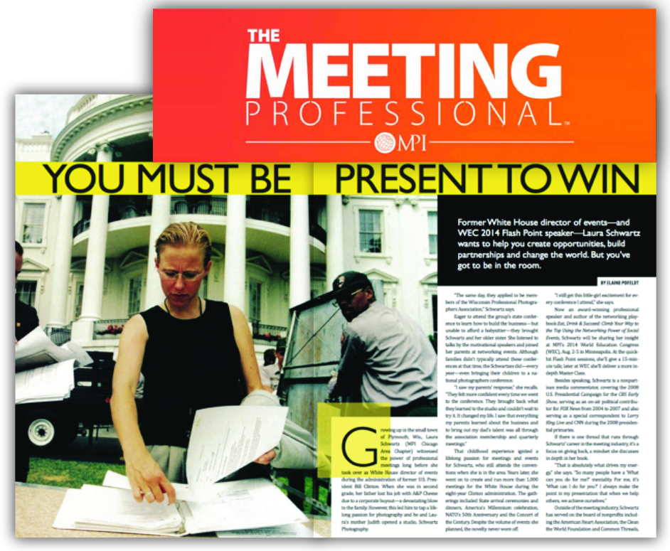 Laura Schwartz, as the White House Director of Events for the Clinton Administration, the youngest female presidential appointee in history, worked one-on-one with the President, the First Lady, World Heads of State and international business leaders as she created and executed more than 1,000 White House events including State arrival ceremonies and dinners, America's Millennium Celebration, the UN Millennium Summit and NATO's 50th Anniversary. While producing the President's events on the world stage, Laura demonstrated the ability to inspire a nation and the world through powerful productions. At just 19 years old, she arrived at the White House, with no political connections, and began her climb up the ranks as a Staff Assistant, the Midwest Press Secretary, the Director of Television, and ultimately, the White House Director of Events. Following the administration, Laura travelled internationally with Former President Clinton for the Global Initiative.