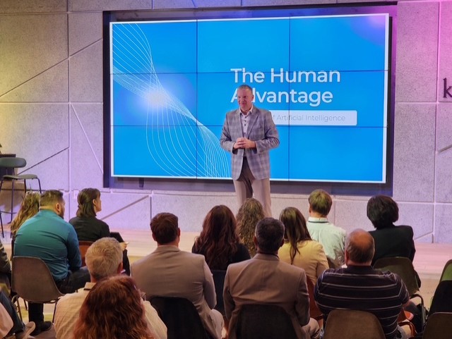 30–90-minute keynote or 3-hour workshop; in-person or virtual. Each version explores The Human Advantage in the Age of AI through practical tools and stories that help leaders build trust, align culture, and lead confidently through technological disruption.